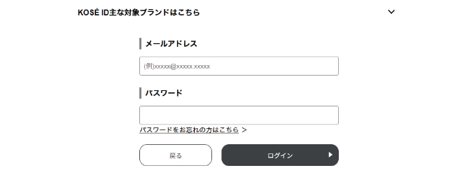 他ショップで連携済みのKOSÉ IDのメールアドレスとパスワードでログイン
