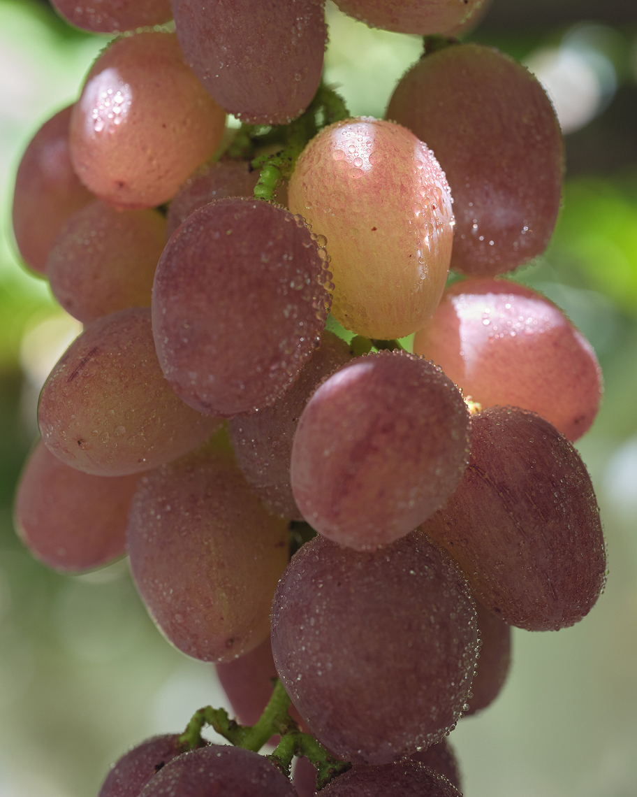 昔は「お月さんの光でも焼ける」と言われた土地。今では半世紀前に灌水施設(スプリンクラー)が整備され、果物の栽培がさかんになった。富士山を望む南アルプスの大地は、そう伝えられるほど太陽に恵まれた地域。台風の影響も受けにくく水はけも良いので、ブドウの栽培に適しています。たわわに実ったブドウは、日中と夜の激しい寒暖差によって、夏から秋にかけてじっくりと着実に色づきを重ねていきます。
